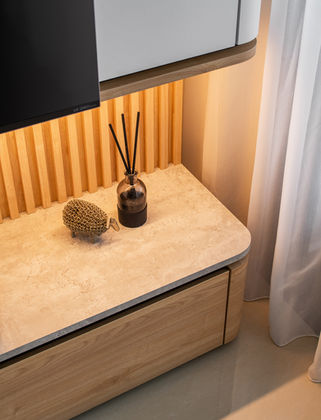 Designed around movement, light, and effortless connection. This space embraces fluid transitions—between zones, textures, and tones—where soft curves and open circulation redefine how one experiences the everyday.