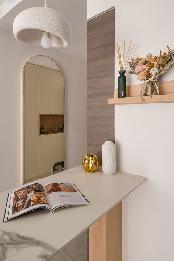 A home where simplicity meets intention. This design blends minimalist principles with rich, warm tones—creamy beige, soft wood textures, and thoughtful lighting