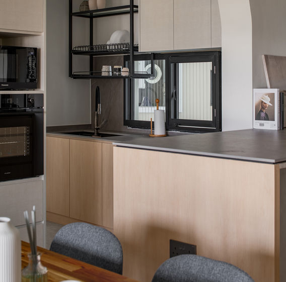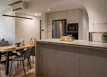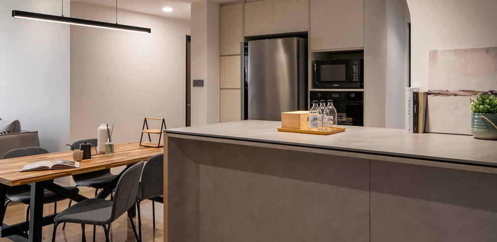 Open concept kitchen creates seamless flow between kitchen and dining area