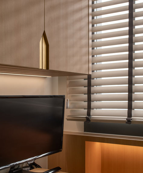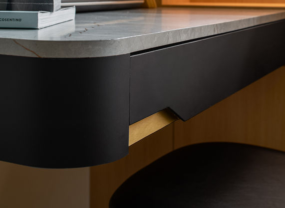 Gold reccesed handle added a bold contrast to enhances the overall aesthetic of the TV console.