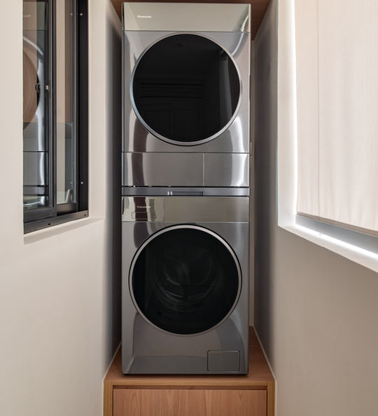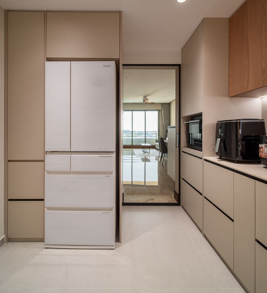 Stepping in the living area flows seamlessly into the pantry, wrapped in a calm, neutral palette that opens up the space.