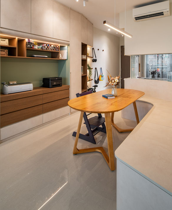 Dining seats double as concealed storage, merging comfort with clever functionality in one seamless design.